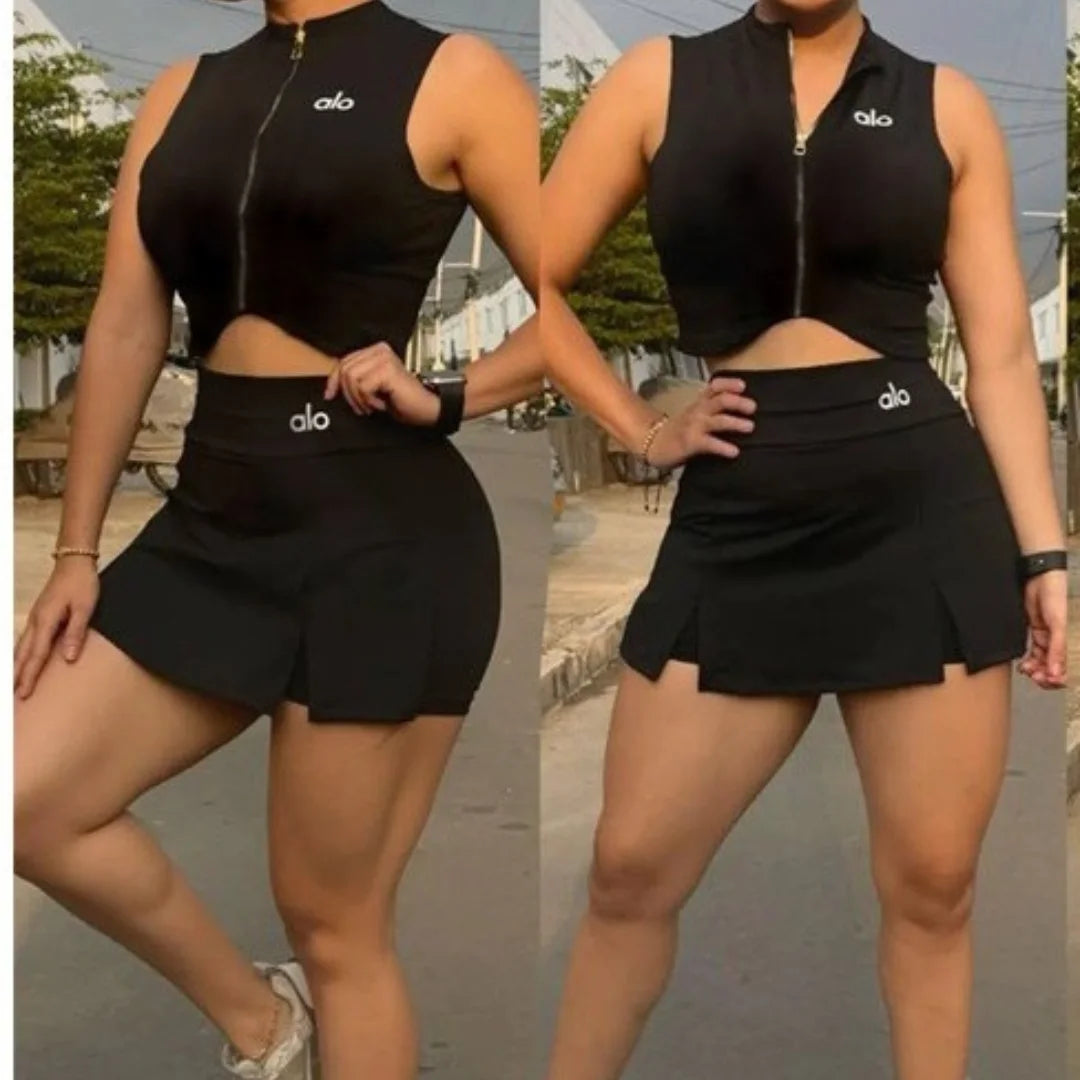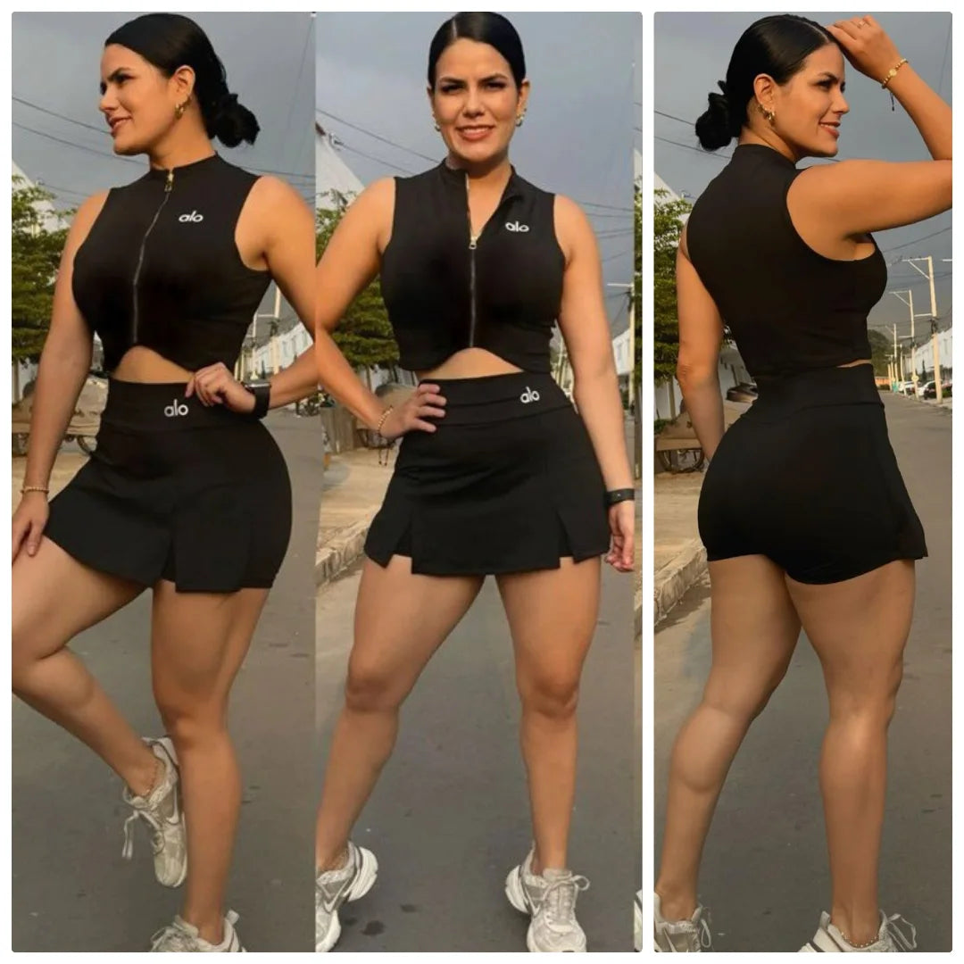 Conjunto deportivo con falda-Chaqueta ajustada, diseñado para brindarte comodidad, seguridad y un look moderno mientras entrenas o disfrutas de tu día o realizas deporte.