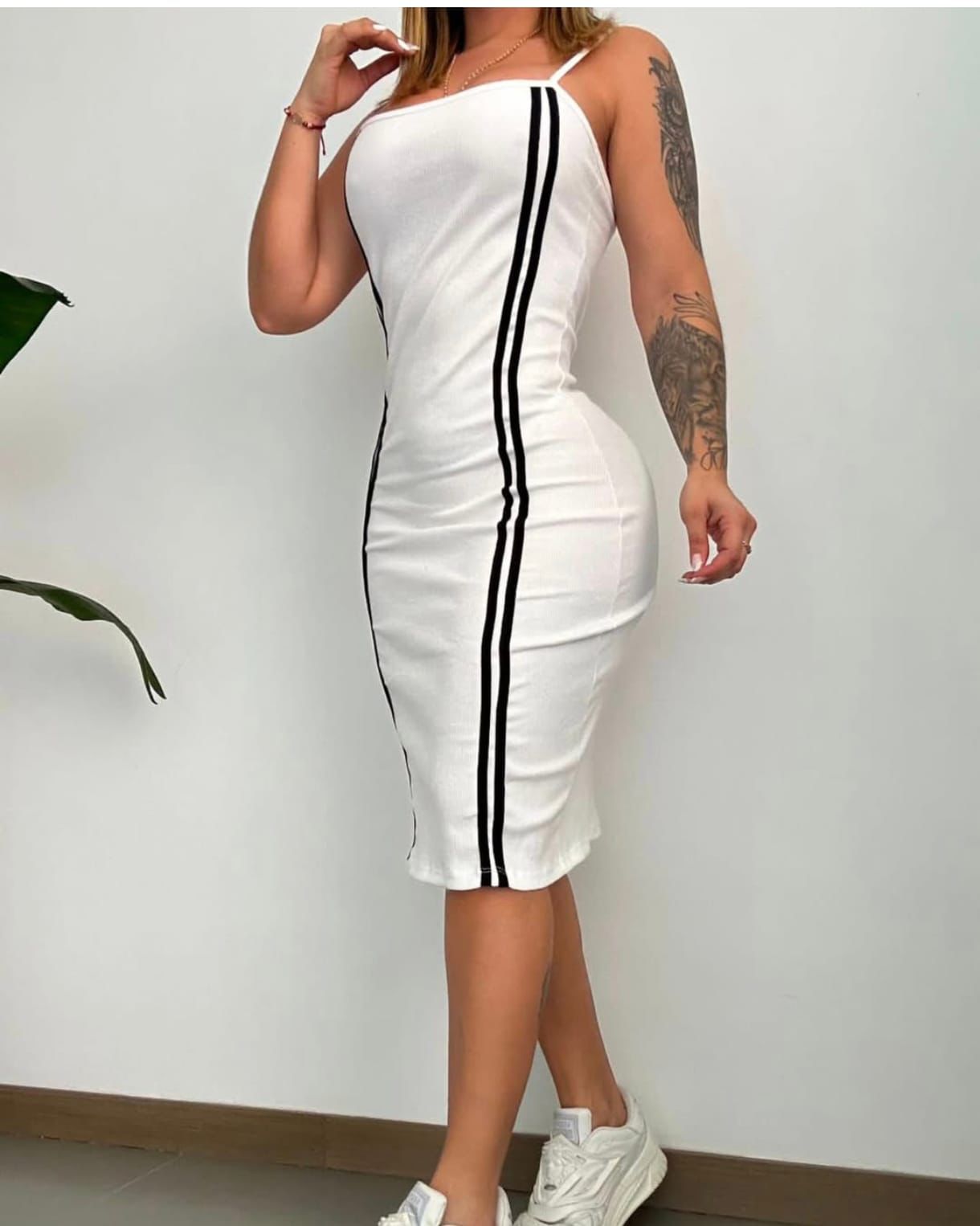 Vestido tipo deportivo con diseño ajustado y efecto estilizador gracias a sus líneas verticales. Tela cómoda, fresca y perfecta para lucir una figura definida en cualquier ocasión. Ideal para outfits casuales o para un look más atrevido con accesorios.